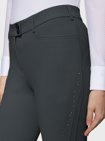 Raffiniertes Design mit Samshield-Logo auf dem Oberschenkel, Samshield-Logo und Swarovski-Details® auf den Gesäßtaschen.