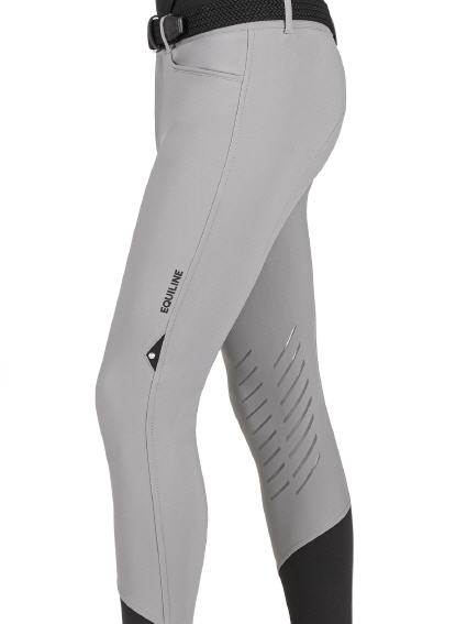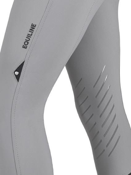 Elastische und komfortable EQUILINE Herrenreithose mit Kniegrip-System aus leicht gebondetem B-Move-Gewebe. Mit zwei Taschen vorne, einer Reißverschlusstasche hinten. UPF 50+ Sonnenschutz, ideal für Sonnentage. Hinten mit gummierter Gürtelschlaufe. Mit komfortablem Stretchverschluss unten an den Beinen.