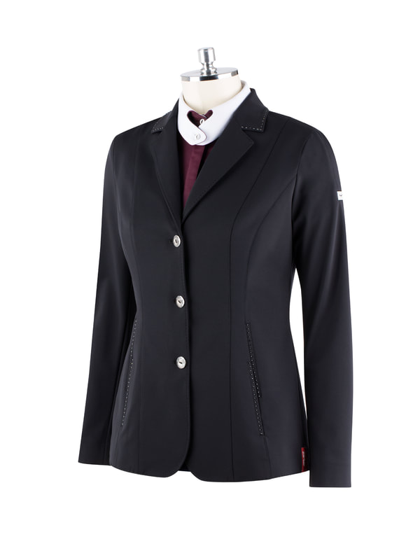ANIMO Damen Reitjacket mit femininem Schnitt und raffinierter Strass-Verzierung an den Reißverschlusstaschen.