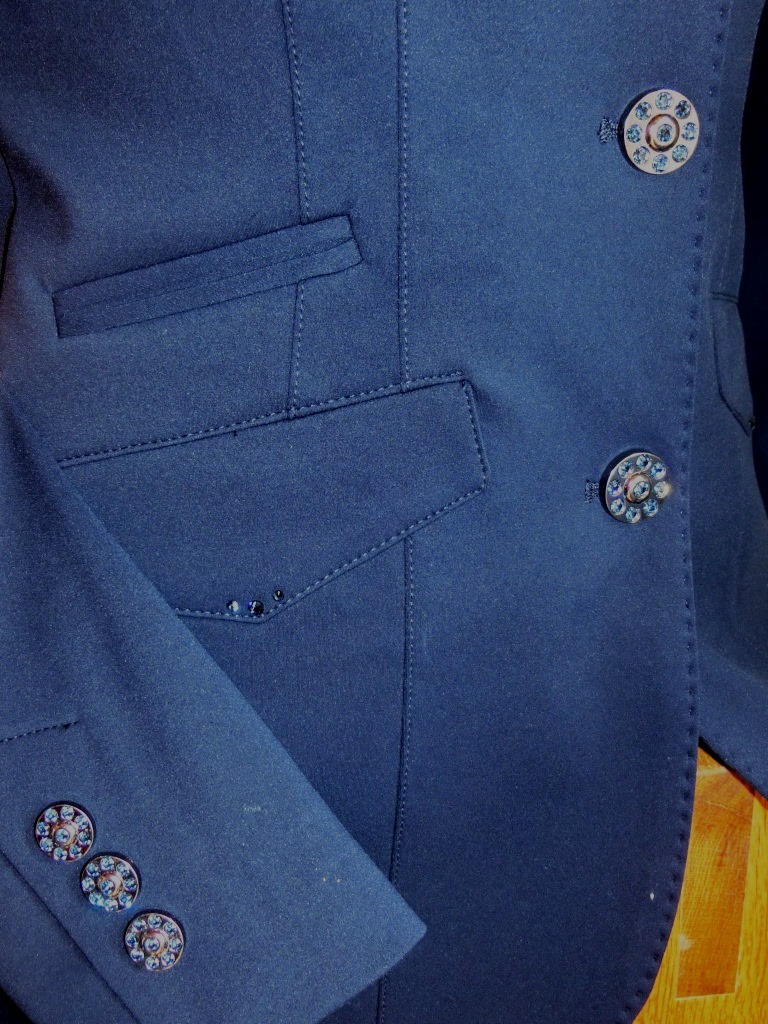 Tolle Animo Glitzer-Knöpfe mit Strass vorn und an den Ärmelabschlüssen. Druckknöpfe und verdeckter Reißverschluss vorn.