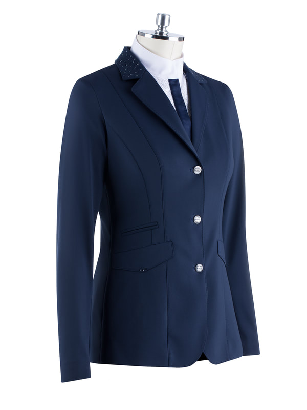 ANIMO Damen Reitjacket mit femininem Schnitt. Ton-in-Ton Verzierung mit Strass-Steinchen am Kragen.