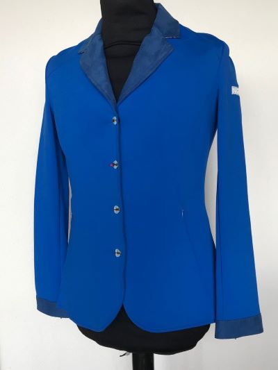 Elegant geschnittenes Damen Reitjacket von ANIMO. Material an Kragen und Ärmelsaum in Alcantaraoptik.