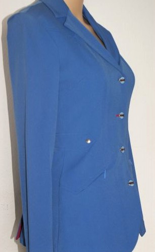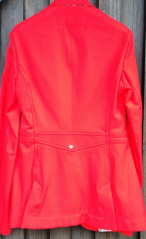 ANIMO Damen Reitjacket in knalligem rot oder auffälligem bluette - mit schönen Details: Riegel hinten und zwei Riegel seitlich verleihen eine schöne Passform.