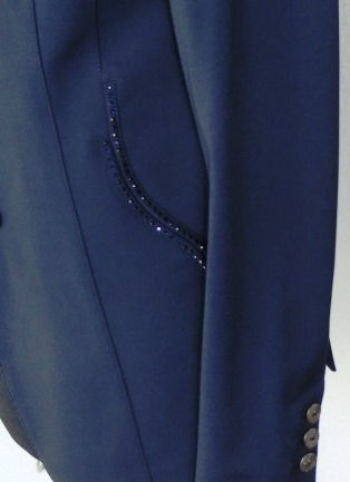 ANIMO Damen Reitjacket mit toller Ton-in-Ton-Strass-Verzierung an den geschwungenen Einschubtaschen und der Krageneinfassung.