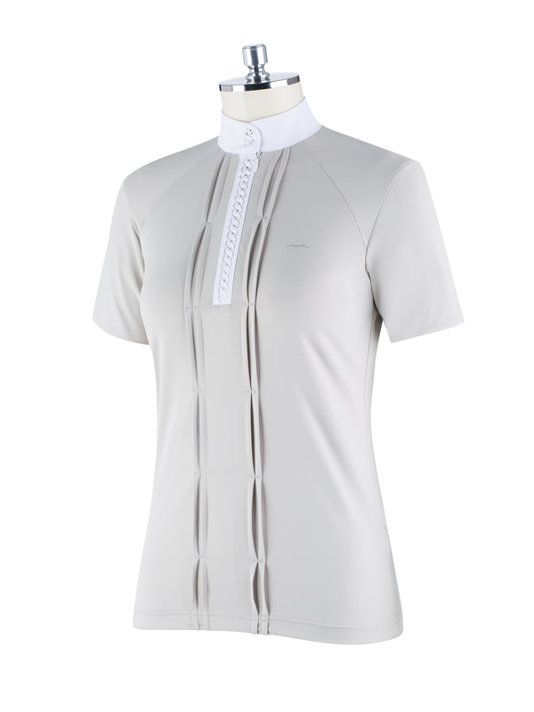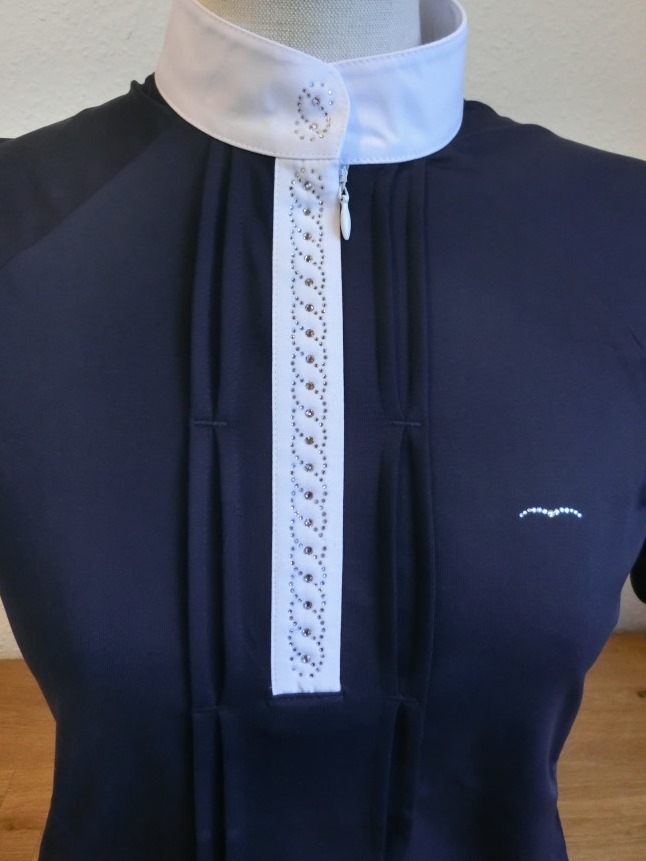ANIMO Damen Kurzarm-Reitshirt mit Blisée-Falten und toller Glitzer-Applikation im Frontbereich und am Kragen.