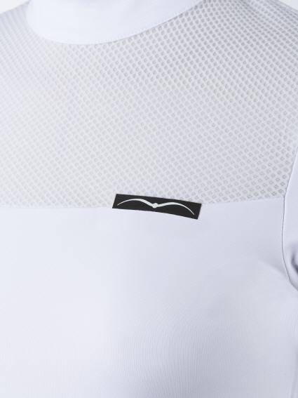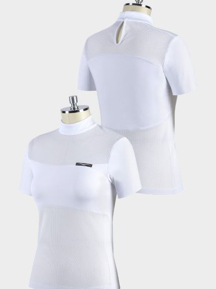 Ultraleichtes Damen-Wettkampf-Poloshirt mit kurzem Arm. Die Jersey-Einsätzen im Brustbereich aus weißem Piquet 'Star' sind leicht und vermitteln ein erfrischendes Gefühl. Es handelt sich um eine innovative Textur, die entwickelt wurde, um der Reiterin maximale Freiheit zu bieten und gleichzeitig eine beträchtliche Kompaktheit beizubehalten, die ausreichend undurchsichtig macht.