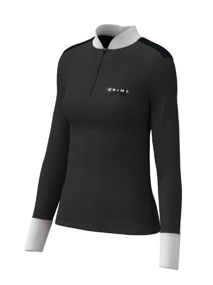 Langärmeliges Damen-Wettkampf-Poloshirt mit halbem Reißverschluss. Der Stoff erinnert an das weiche und angenehme Gefühl von Kaschmir. Technisches, sportliches Material, das auch im Alltag nützlich ist. Leistungsstarkes und widerstandsfähiges Gewebe, das hilft, die Wärmeisolierung zu regulieren und die externe Übertragung von Schweiß zu ermöglichen. Schmale Passform. Thermoklebendes Animo-Logo. Sportliches Design.