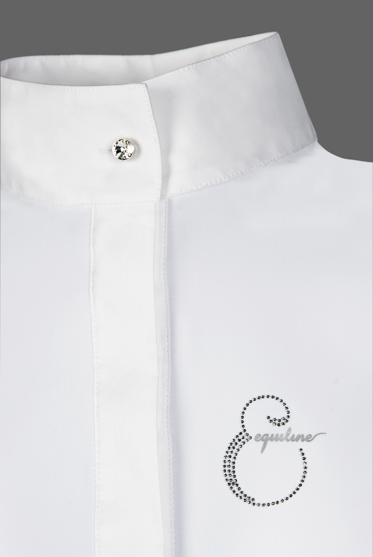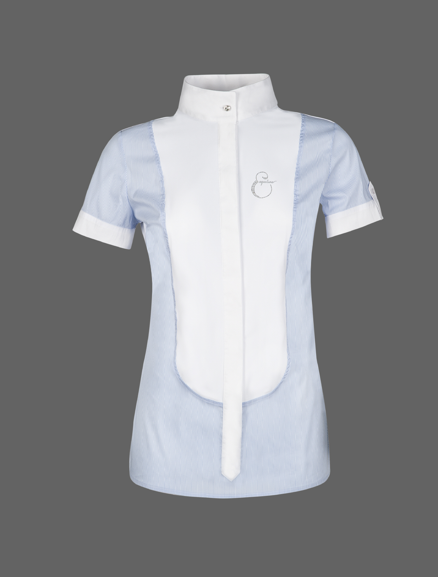 EQUILINE Damen Reitbluse mit Mix aus weißem Stretch-Lycra und gestreiftem Baumwollmix.