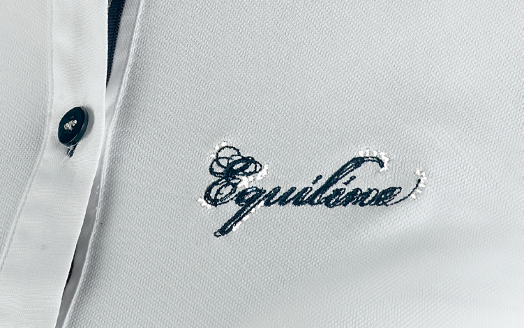 Farblich abgesetzte Knöpfe, Knopfleiste unterlegt. Mit gesticktem Equiline-Schriftzug auf der Brust.