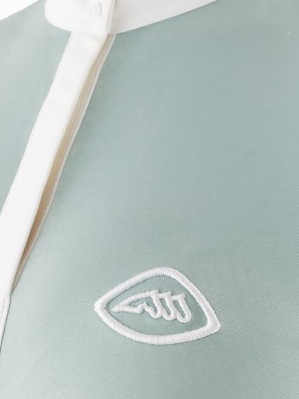 Für Anmut und Leistung entworfen, kombiniert dieses Langarmshirt atmungsaktives, elastisches Material mit Kühltechnologie, um Sie während der gesamten Reitstunde frisch zu halten. Weißer Stretch-Tüll an Ärmeln und Rücken sorgt für dezente Eleganz und Belüftung, während verdeckte Knöpfe auf der Vorderseite einen klaren Look bewahren. Abgerundet wird das Design durch schnelltrocknende Eigenschaften, UPF 30+ Sonnenschutz, weiße Druckknöpfe an Kragen und Manschetten sowie ein weißes, aufgedrucktes Logo auf der Brust – die perfekte Kombination aus Stil und Funktion.