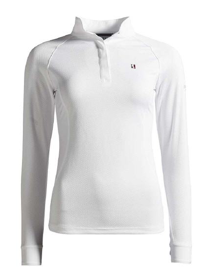 Dieses klassische Turniershirt ist die ultimative elegante Leistungskleidung für leidenschaftliche Reiter. Es wurde entwickelt, um die Leistung durch Flexibilität und Bewegungsfreiheit zu verbessern und gleichzeitig eine klassische und schicke Silhouette zu gewährleisten. Jeder Stich und jede Naht wurde sorgfältig durchdacht und an den Reitsport angepasst. Dieses Shirt verfügt über eine raffiniert gewebte Knopfleiste und einen Kragen, kombiniert mit verdeckten Druckknöpfen für einfache Anwendung. Die langen Ärmel und der Hauptteil bestehen aus knitterfreiem Jersey, während die Seiteneinsätze aus funktionalem Mikropiqué-Gewebe gefertigt sind, das nicht nur atmungsaktiv, sondern auch schnelltrocknend und feuchtigkeitsableitend ist!