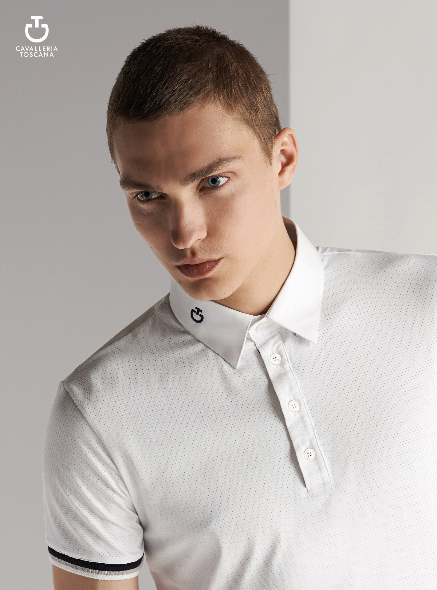 Gesticktes CT-Logo am Kragen, gestickter Cavalleria Toscana Schriftzug hinten.