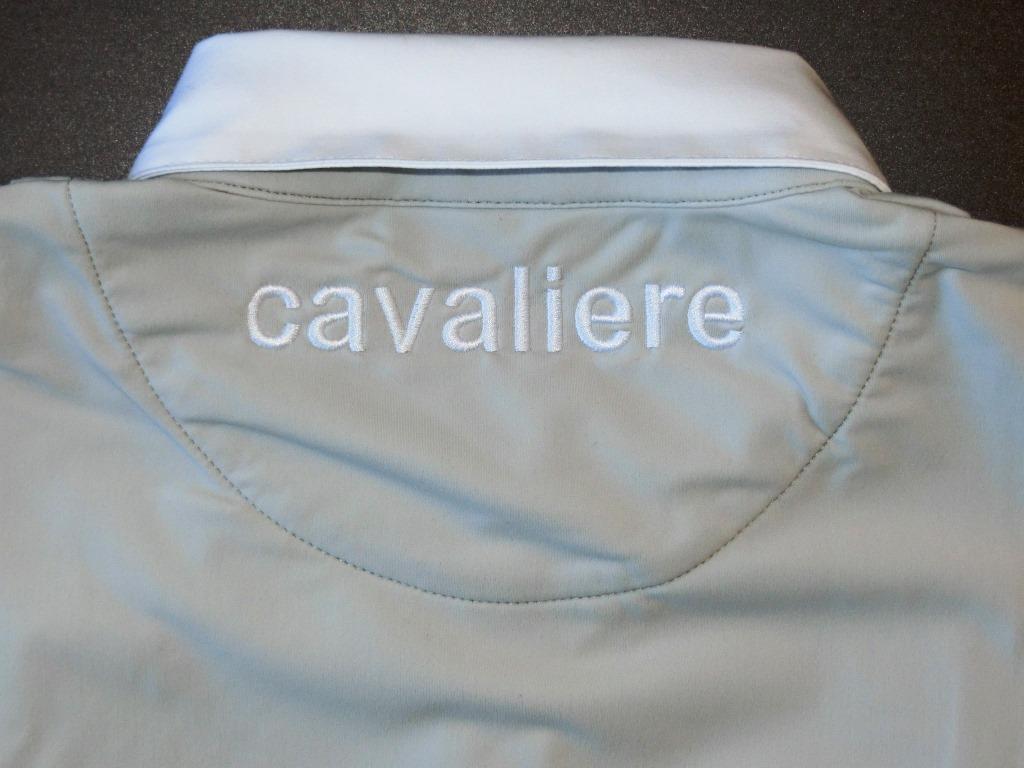Farblich abgesetzter Streifen vorne und gestickter Cavaliere-Schriftzug auf dem Rücken.