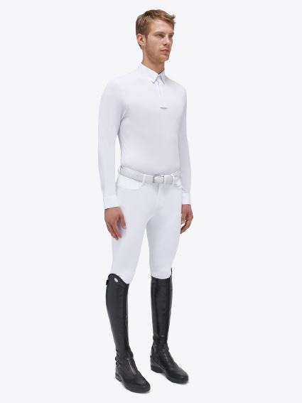 Das langärmelige Wettkampf-Poloshirt CT Piquet für Herren verbindet Stil und Leistung nahtlos. Dieses Poloshirt aus strahlend weißem Stoff sorgt für eine bequeme Passform und gibt Ihnen die Freiheit, sich mit Leichtigkeit zu bewegen. Die Mesh-Einsätze verbessern die Luftzirkulation und machen es perfekt für heißes Wetter. Eleganz steckt in den Details – der weiße Popeline-Kragen, die Streifen, die Manschetten und die Manschetten verleihen dem Ganzen einen Hauch von Klasse. Die vorderen Knöpfe sind dezent in weiß verdecktt, während die Manschettenknöpfe freiliegen, was ein einzigartiges und auffälliges Merkmal darstellt. Die CT-Logo-Stickerei am Kragen zeigt stolz die Authentizität und das Engagement unserer Marke.