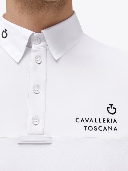 Verbessern Sie Ihren Reitstil mit diesem Herren-Wettkampf-Poloshirt aus hochwertigem Jersey. Die langen Ärmel bieten optimalen Schutz, während die Knöpfe einen Hauch von Eleganz und Zweckmäßigkeit verleihen. Dieses Kleidungsstück wurde entwickelt, um Komfort und Bewegungsfreiheit zu bieten und gleichzeitig einen raffinierten Look zu bieten. Die weiche Jersey-Textur sorgt für eine bequeme Passform und hervorragende Atmungsaktivität, ideal für lange Tage im Sattel. Das Cavalleria Toscana-Logo verleiht diesem Kleidungsstück ein unverwechselbares Detail.