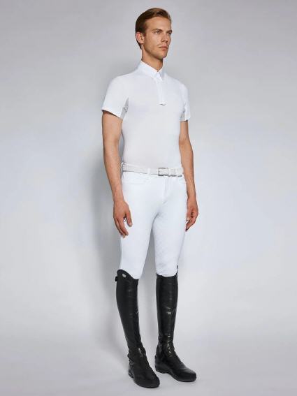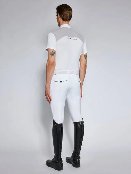 Das Cavalleria Toscana Herren Reitshirt ist aus technischem Piqué-Material gefertigt und sorgt für unvergleichlichen Komfort und Atmungsaktivität – wesentliche Elemente für Spitzenleistungen während des Wettbewerbs. Die Frontknöpfen verleihen nicht nur ein klassisches und raffiniertes Aussehen, sondern verbessert auch die Gesamtästhetik. Die kurzen Ärmel und der Mesh-Einsatz am Rücken tragen zu einem Gefühl von Coolness bei und sorgen für uneingeschränkte Bewegungsfreiheit. Werten Sie Ihre Reitbekleidung mit diesem außergewöhnlichen Polo auf, das sowohl den Anforderungen an Stil als auch Leistung gerecht wird.