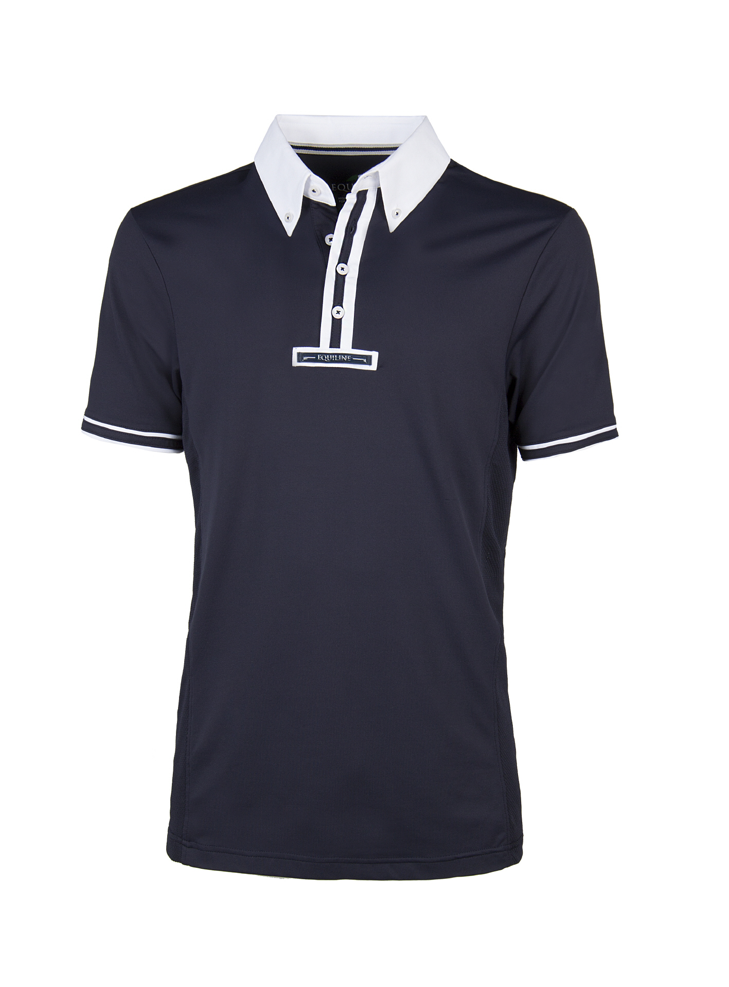 Kurzarm Herren Reitshirt mit Button-Down-Kragen und Equiline-Emblem auf der Brust.