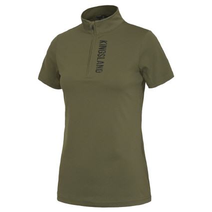 Das Kingsland DamenTrainingsshirt mit kurzem Reißverschluss hat kurze Ärmel aus strukturiertem Jersey-Stoff. Großer Kingsland Schriftzug entlang des Reißverschlussen vorn, hinten im Nacken kleines Kingsland-Logo.