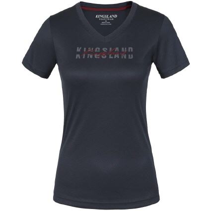 Das Kingsland Damen T-Shirt mit V-Ausschnitt besteht aus einem atmungsaktiven und schnelltrocknenden Stoff, welches es zur perfekten Wahl fürs Reiten im Sommer macht. Das T-Shirt geht keine Kompromisse in Sachen Mode ein und zeigt ein großes Kingsland-Logo über der Brust und ein kontrastfarbenes Band hinten am Nacken.