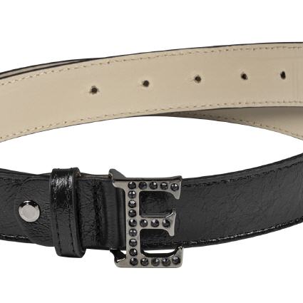 Damen Equiline Gürtel aus hochwertigem Leder und schöner Schnalle in E-Form, die mit Strasssteinen besetzt ist.