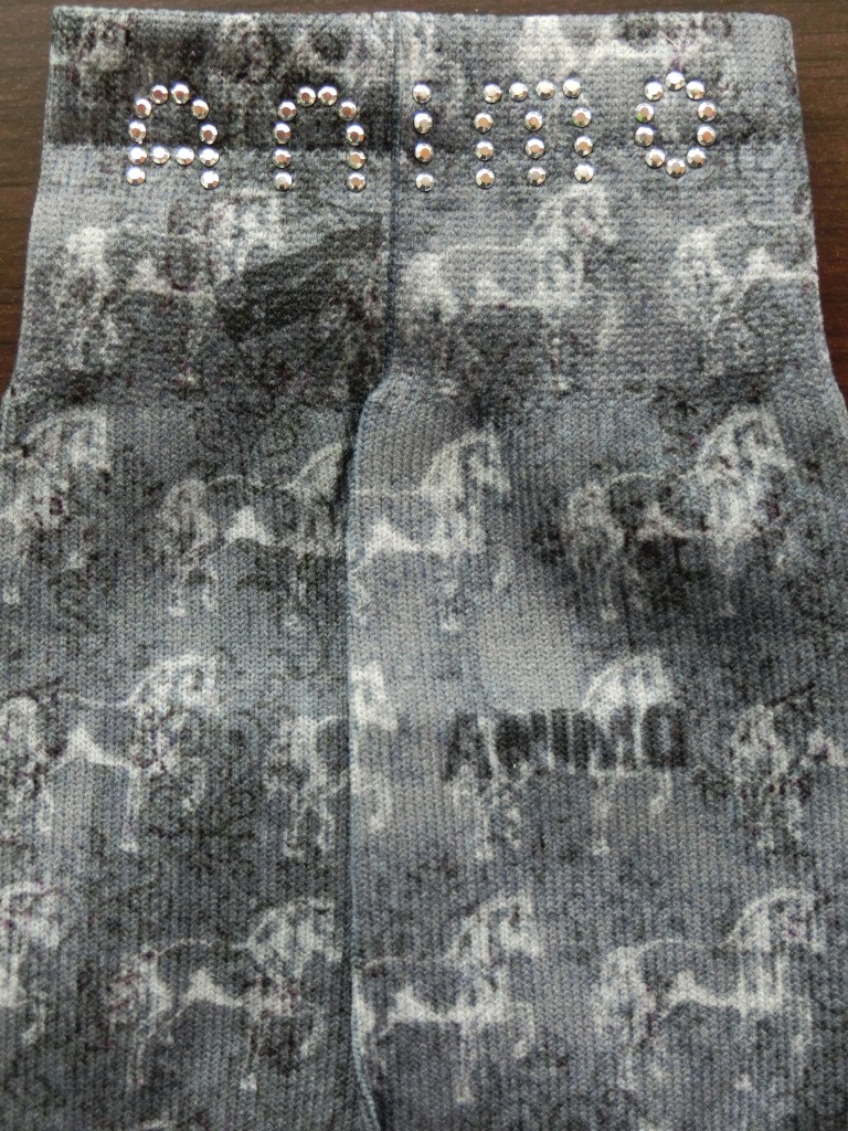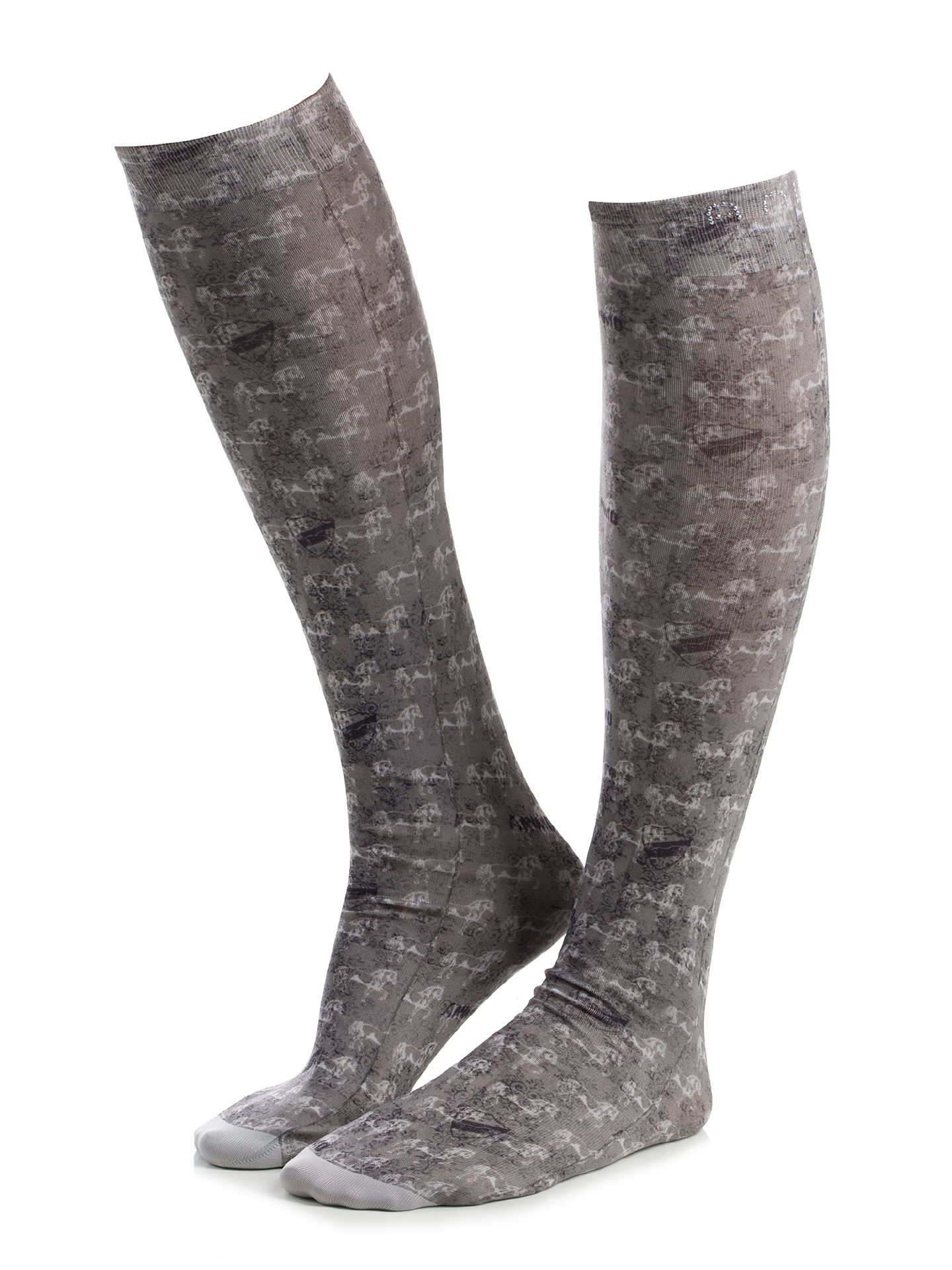 Dünne Damen Reitstrümpfe mit Pferdemotiv allover.