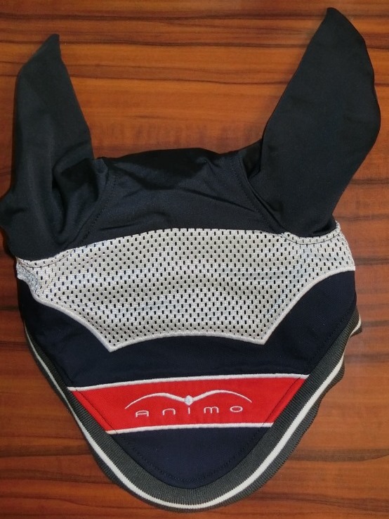 Animo Fliegenhaube aus Funktionsmaterial mit klassischem, rotem Animo-Logo vorn.