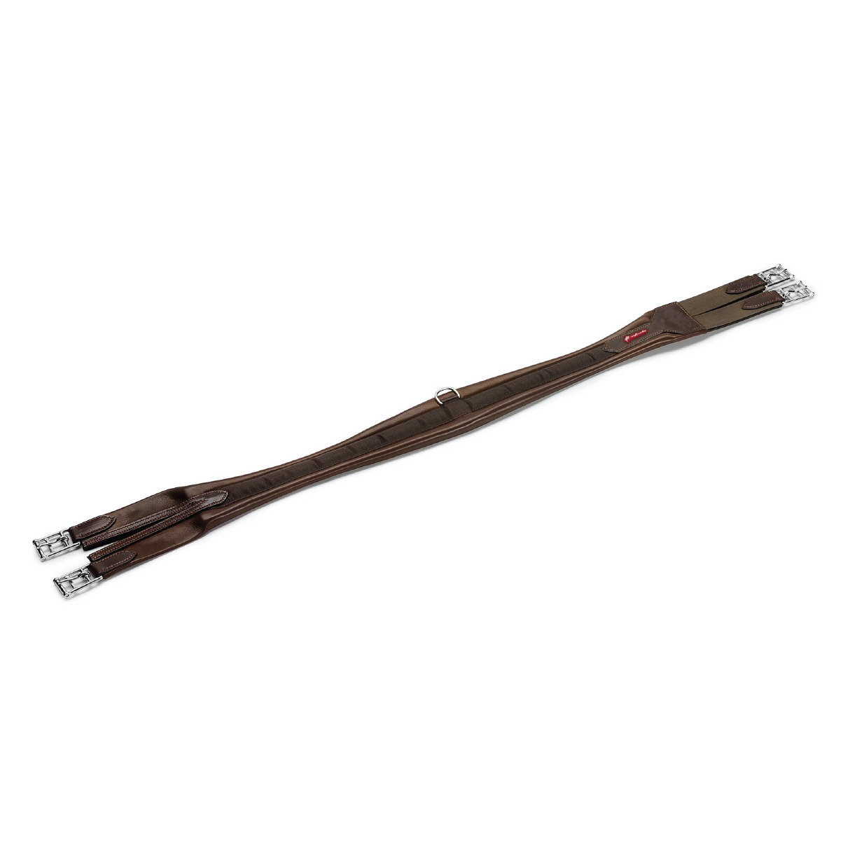 Klassischer Sattelgurt von Selleria EQUIPE aus Leder mit Nylon verstärkt. Einseitiger Elastikeinsatz und Edelstahlschnallen.