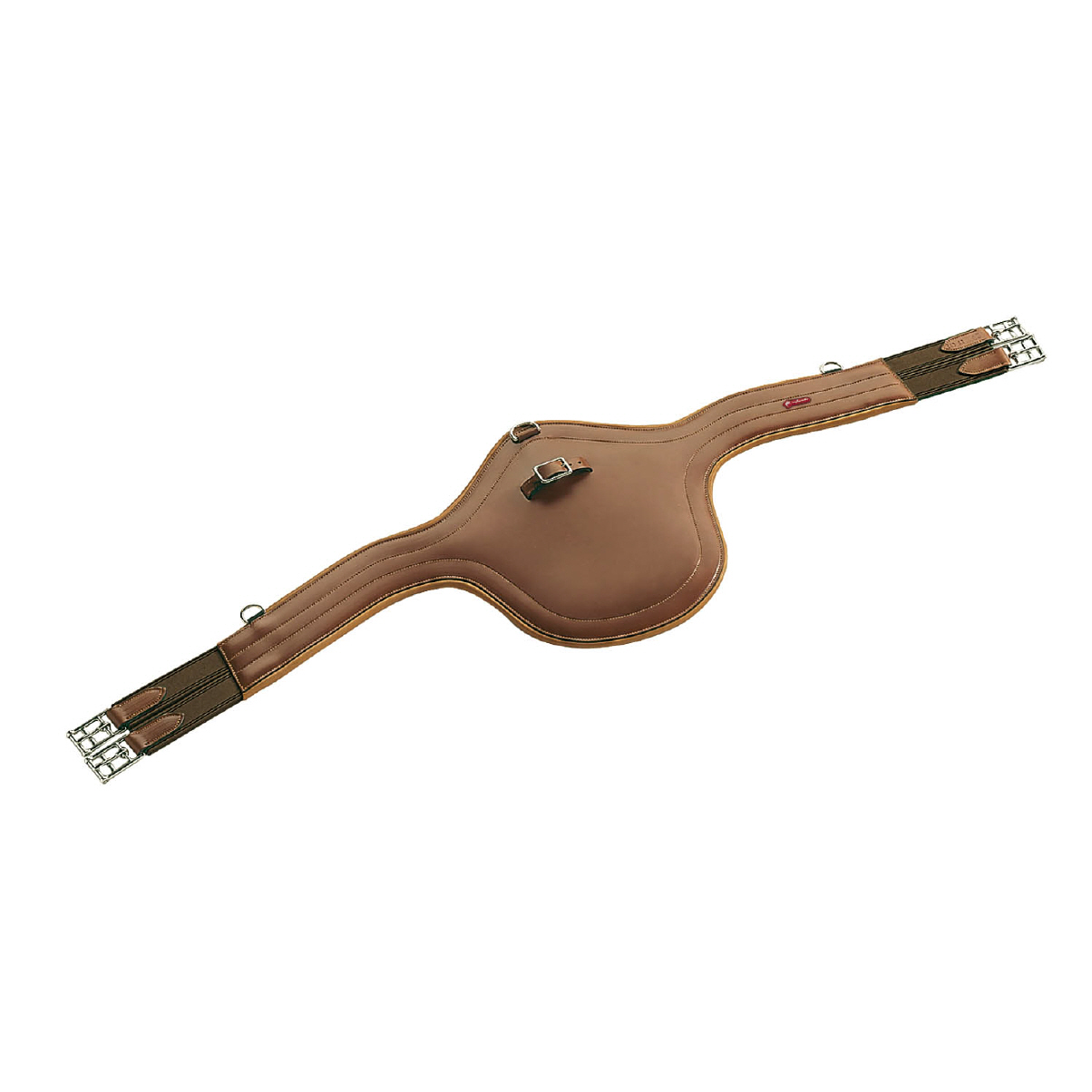 Anatomisch geformter Sattelgurt mit Stollenschutz aus Leder mit seitlichen Elasikeinsätzen mit Edelstahlschnallen.