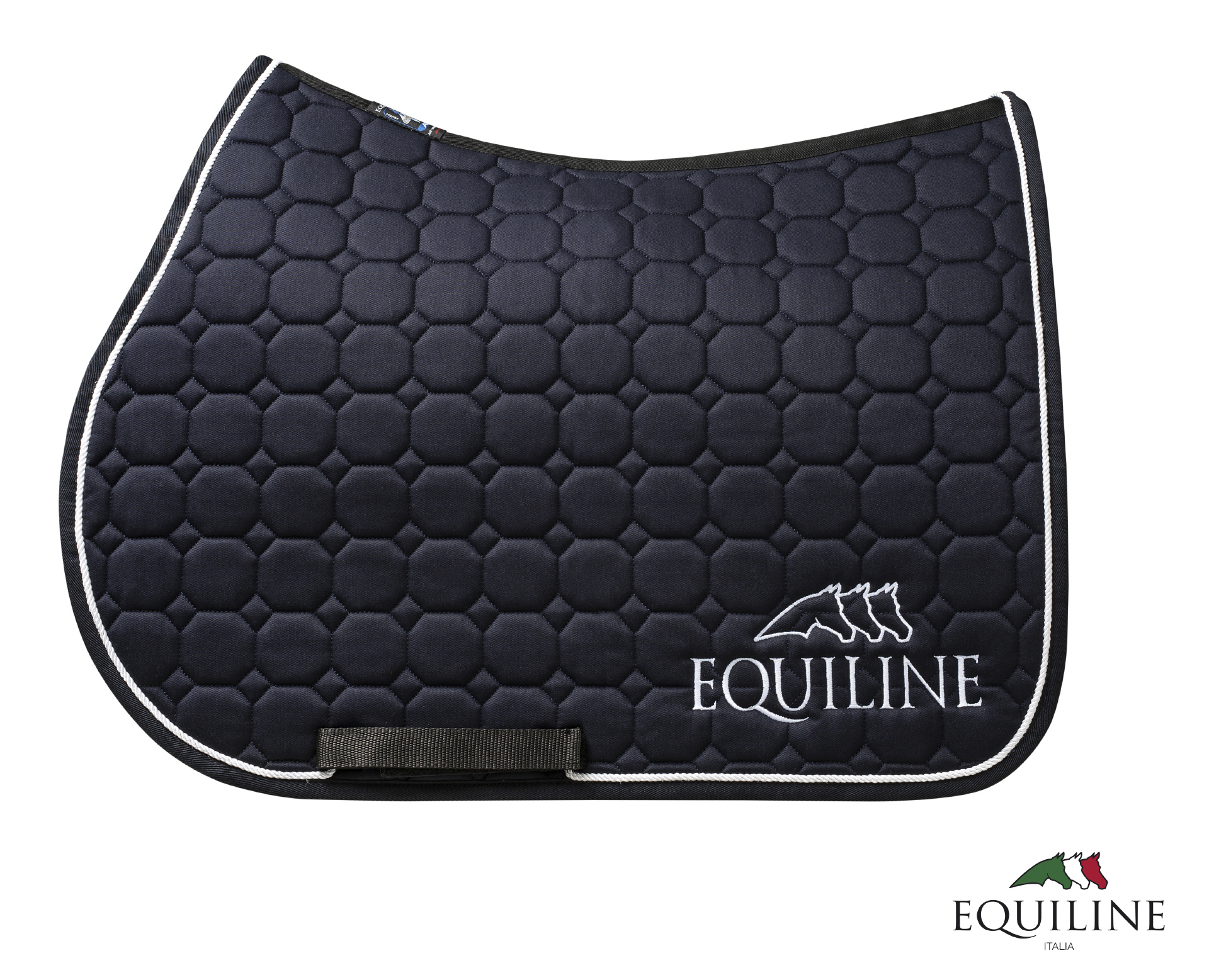 Equiline Schabracke mit Achteckmuster und im Outline-Verfahren aufgesticktem EQUILINE-Logo und passender Kordel.