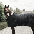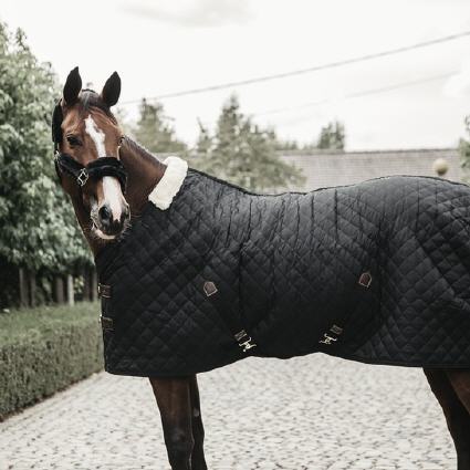 Das Innere der Stalldecke ist mit dem für Kentucky charakteristischen künstlichen Kaninchenfell ausgekleidet. Dieses verhindert Scheuern und bringt das Fell des Pferdes zum Glänzen. Außerdem schafft das künstliche Kaninchenfell eine isolierende Schicht um das Pferd, da es die Körperwärme des Pferdes einfängt und hält. Für noch mehr Wärme gibt es eine 400g Faserfüllung. Diese Füllung wirkt ähnlichen wie Daunen, ist aber freundlicher für den Anwender. Das Äußere dieser edlen Stalldecke besteht aus hochfestem 600D Polyester und ist in Rautenmuster gesteppt. Die Steppung kombiniert mit dem 600D Polyester macht es unglaublich schwer die Decke zu zerreißen. Späne bleiben auch nicht am Stoff haften.