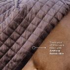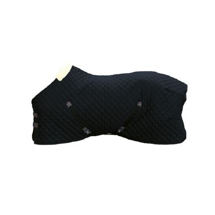 Die Stalldecke hat eine anatomische Form und wird von 2 starken Schnallen vorne und 2 Kreuzgurten mit Sicherheitsgurt-Gewebe verschlossen. Dank des künstlichen Kaninchenfells gleitet die Decke nach dem Wälzen oder Liegen von allein wieder an Ort und Stelle. Für zusätzlichen Schutz des Widerristes hat die Decke in diesem Bereich künstliches Schaffell.