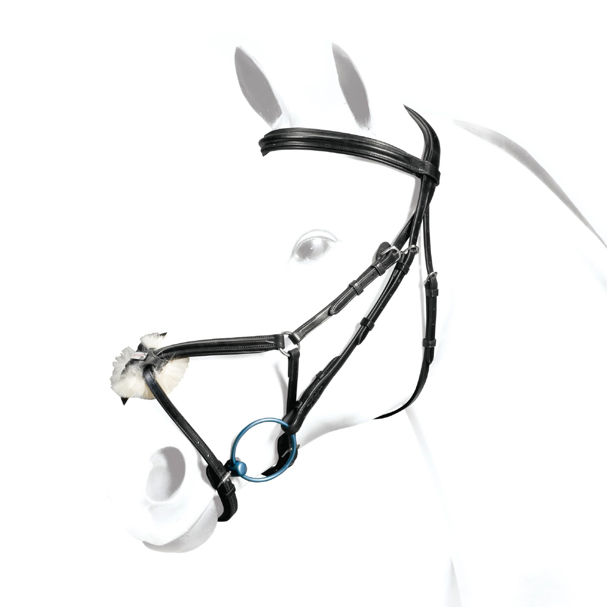 Stirnband bombiert. Reithalfter in der Mitte mit Fell unterlegt.